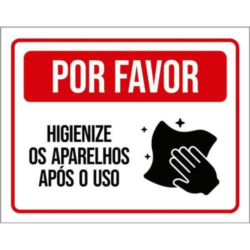 Kit 3 Placas Academia Higienize Aparelhos Após Uso Placas de sinalizaço fabricadas com poliestireno de alto impacto PSAI de 2mm e impressão ultravioleta.