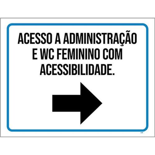Kit 3 Placas Acesso Administração Wc Feminino Seta Placas de sinalizaço fabricadas com poliestireno de alto impacto PSAI de 2mm e impressão ultravioleta.