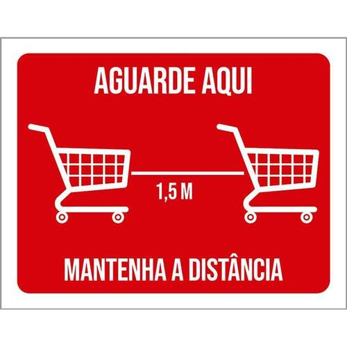 Kit 3 Placas Aguarde Aqui Supermercado Mantenha Distância Placas de sinalizaço fabricadas com poliestireno de alto impacto PSAI de 2mm e impressão ultravioleta.