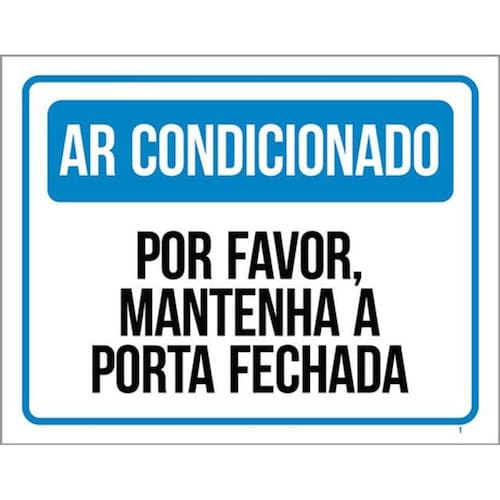 Kit 3 Placas Ar Condicionado Mantenha Porta Fechada Azul Placas de sinalizaço fabricadas com poliestireno de alto impacto PSAI de 2mm e impressão ultravioleta.