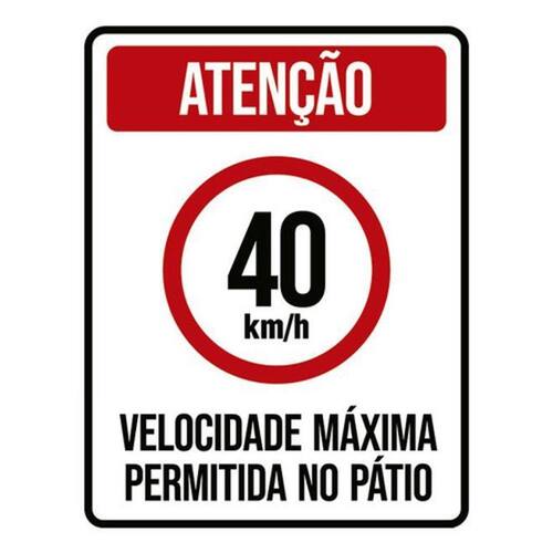 Kit 3 Placas Atenção 40km Velocidade Máxima Pátio
