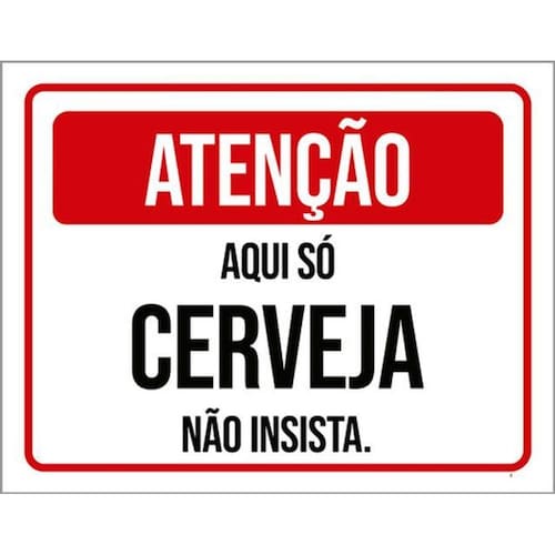 Kit 3 Placas Atenção Aqui Só Cerveja Não Insista 36x46 Placas de sinalizaço fabricadas com poliestireno de alto impacto PSAI de 2mm e impressão ultravioleta.