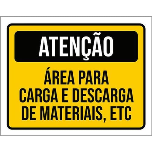 Kit 3 Placas Atenção Área Carga Descarga Materiais Amarela Placas de sinalizaço fabricadas com poliestireno de alto impacto PSAI de 2mm e impressão ultravioleta.