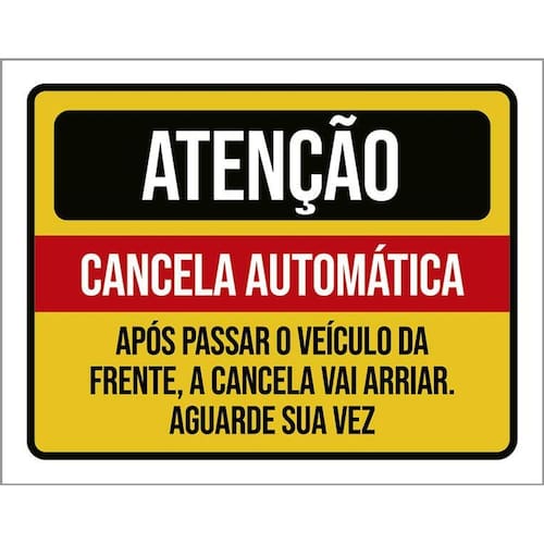 Kit 3 Placas Atenção Cancela Automática Aguarde Sua Vez Placas de sinalizaço fabricadas com poliestireno de alto impacto PSAI de 2mm e impressão ultravioleta.