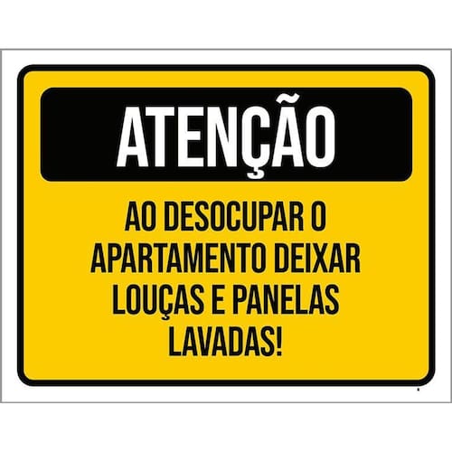 Kit 3 Placas Atenção Desocupar Apartamento Lave Louça Placas de sinalizaço fabricadas com poliestireno de alto impacto PSAI de 2mm e impressão ultravioleta.