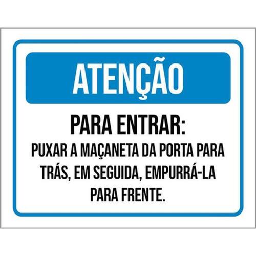 Kit 3 Placas Atenção Entrar Puxar Maçaneta Porta Para Trás Placas de sinalizaço fabricadas com poliestireno de alto impacto PSAI de 2mm e impressão ultravioleta.