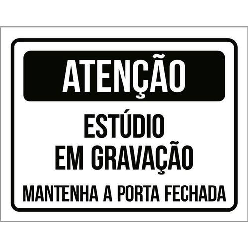 Kit 3 Placas Atenção Estúdio Gravação Manter Porta Fechada Placas de sinalizaço fabricadas com poliestireno de alto impacto PSAI de 2mm e impressão ultravioleta.