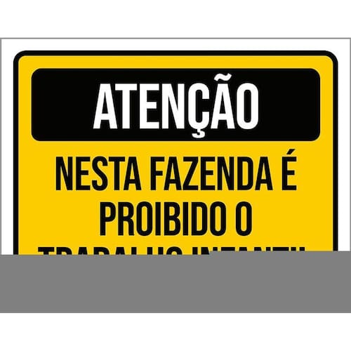 Kit 3 Placas Atenção Fazenda Proibido Trabalho Infantil Placas de sinalizaço fabricadas com poliestireno de alto impacto PSAI de 2mm e impressão ultravioleta.