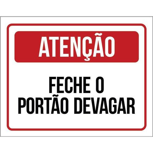 Kit 3 Placas Atenção Feche O Portão Devagar Placas de sinalizaço fabricadas com poliestireno de alto impacto PSAI de 2mm e impressão ultravioleta.
