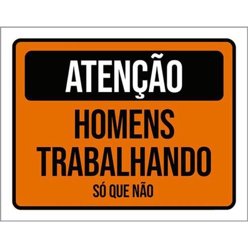 Kit 3 Placas Atenção Homens Trabalhando Só Que Não Placas de sinalizaço fabricadas com poliestireno de alto impacto PSAI de 2mm e impressão ultravioleta.