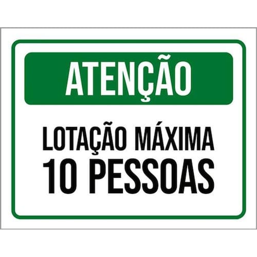 Kit 3 Placas Atenção Lotação Máxima 10 Pessoas Placas de sinalizaço fabricadas com poliestireno de alto impacto PSAI de 2mm e impressão ultravioleta.