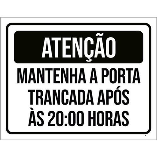 Kit 3 Placas Atenção Mantenha Porta Trancada Após 20h 36x46 Placas de sinalizaço fabricadas com poliestireno de alto impacto PSAI de 2mm e impressão ultravioleta.