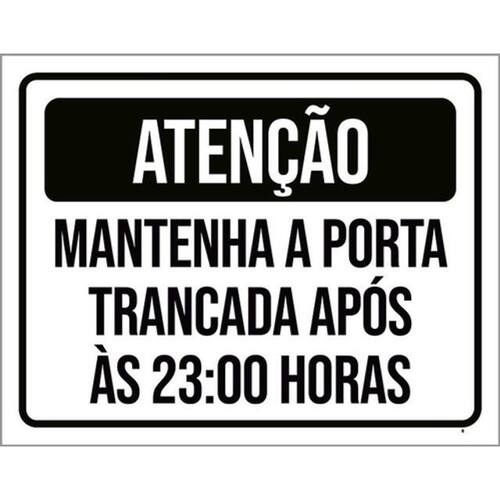 Kit 3 Placas Atenção Mantenha Porta Trancada Após 23h 36x46