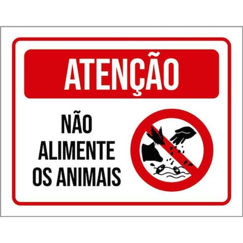 Kit 3 Placas Atenção Não Alimente Animais Placas de sinalizaço fabricadas com poliestireno de alto impacto PSAI de 2mm e impressão ultravioleta.