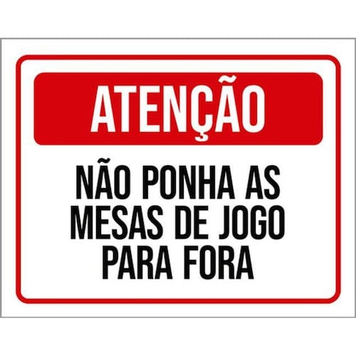 Kit 3 Placas Atenção Não Ponha Mesas Jogo Para Fora Placas de sinalizaço fabricadas com poliestireno de alto impacto PSAI de 2mm e impressão ultravioleta.