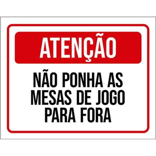Kit 3 Placas Atenção Não Ponha Mesas Jogo Para Fora Placas de sinalizaço fabricadas com poliestireno de alto impacto PSAI de 2mm e impressão ultravioleta.