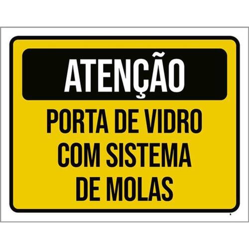 Kit 3 Placas Atenção Porta Vidro Sistema Molas 36x46 Placas de sinalizaço fabricadas com poliestireno de alto impacto PSAI de 2mm e impressão ultravioleta.