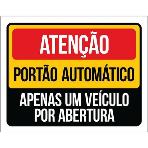 Kit 3 Placas Atenção Portão Automático Apenas Um Veículo Placas de sinalizaço fabricadas com poliestireno de alto impacto PSAI de 2mm e impressão ultravioleta.