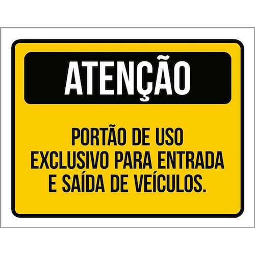Kit 3 Placas Atenção Portão Exclusivo Entrada Saída Veículos Placas de sinalizaço fabricadas com poliestireno de alto impacto PSAI de 2mm e impressão ultravioleta.