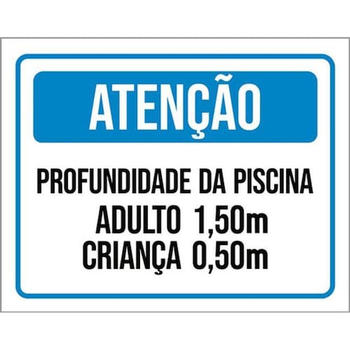 Kit 3 Placas Atenção Profundidade Piscina Adulto Criança Placas de sinalizaço fabricadas com poliestireno de alto impacto PSAI de 2mm e impressão ultravioleta.