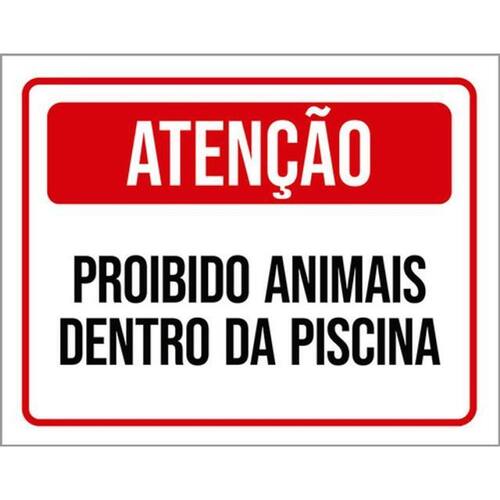 Kit 3 Placas Atenção Proibido Animais Dentro Da Piscina Placas de sinalizaço fabricadas com poliestireno de alto impacto PSAI de 2mm e impressão ultravioleta.