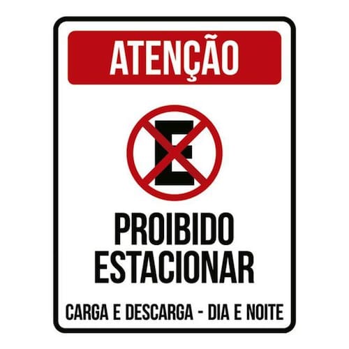 Kit 3 Placas Atenção Proibido Estacionar Dia Noite Carga Placas de sinalizaço fabricadas com poliestireno de alto impacto PSAI de 2mm e impressão ultravioleta.