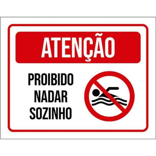 Kit 3 Placas Atenção Proibido Nadar Sozinho Placas de sinalizaço fabricadas com poliestireno de alto impacto PSAI de 2mm e impressão ultravioleta.