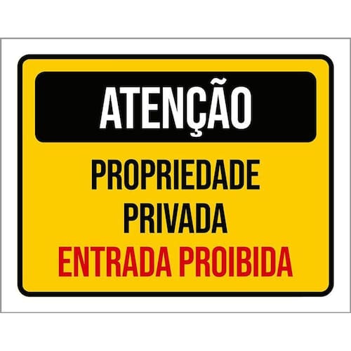 Kit 3 Placas Atenção Propriedade Privada Entrada Proibida Placas de sinalizaço fabricadas com poliestireno de alto impacto PSAI de 2mm e impressão ultravioleta.