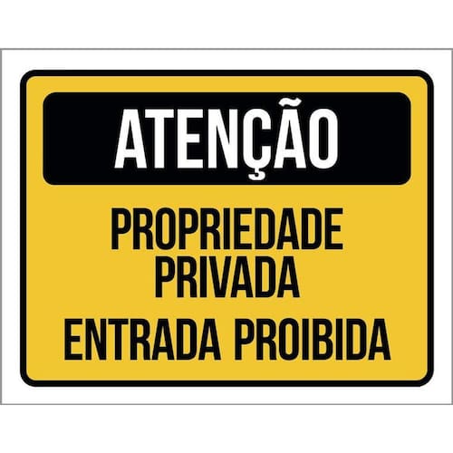 Kit 3 Placas Atenção Propriedade Privada Entrada Proibida Placas de sinalizaço fabricadas com poliestireno de alto impacto PSAI de 2mm e impressão ultravioleta.