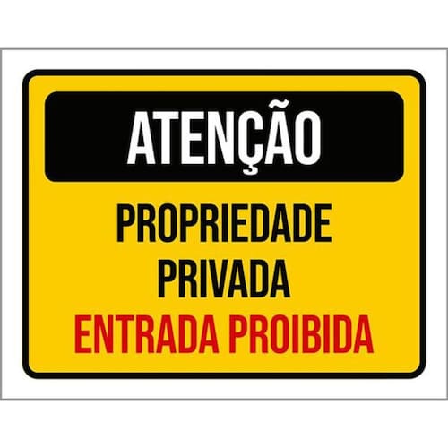Kit 3 Placas Atenção Propriedade Privada Entrada Proibida Placas de sinalizaço fabricadas com poliestireno de alto impacto PSAI de 2mm e impressão ultravioleta.