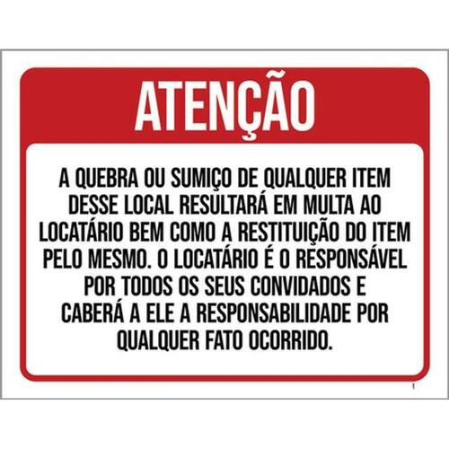 Kit 3 Placas Atenção Quebra Sumiço Multa Locatário Placas de sinalizaço fabricadas com poliestireno de alto impacto PSAI de 2mm e impressão ultravioleta.