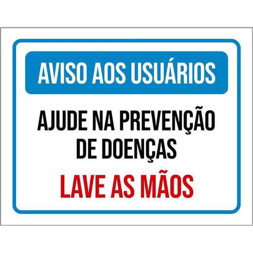 Kit 3 Placas Aviso Aos Usuários Ajude Prevenção Lave Mãos Placas de sinalizaço fabricadas com poliestireno de alto impacto PSAI de 2mm e impressão ultravioleta.