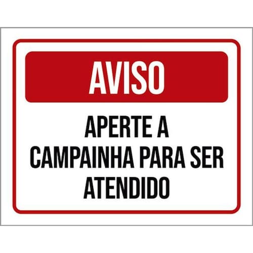 Kit 3 Placas Aviso Aperte Campainha Para Ser Atendido 36x46 Placas de sinalizaço fabricadas com poliestireno de alto impacto PSAI de 2mm e impressão ultravioleta.