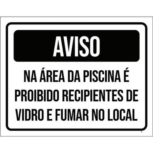 Kit 3 Placas Aviso Área Piscina Proibida Recipientes Vidro Placas de sinalizaço fabricadas com poliestireno de alto impacto PSAI de 2mm e impressão ultravioleta.
