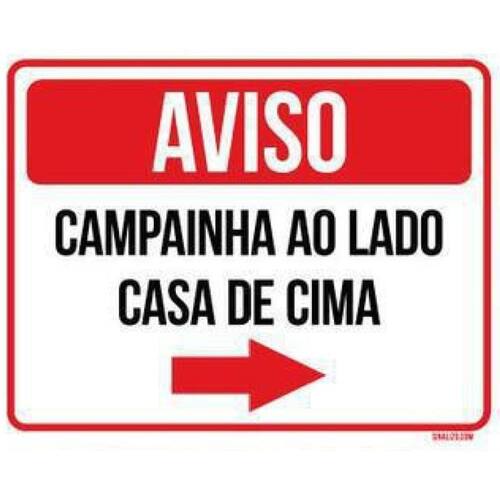 Kit 3 Placas Aviso Campainha Ao Lado Casa De Cima