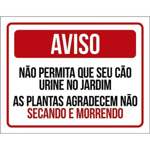 Kit 3 Placas Aviso Cão Urine Jardim Plantas Secando Morrendo Placas de sinalizaço fabricadas com poliestireno de alto impacto PSAI de 2mm e impressão ultravioleta.