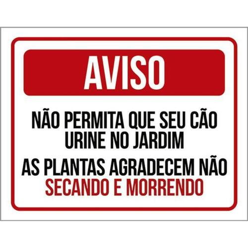 Kit 3 Placas Aviso Cão Urine Jardim Plantas Secando Morrendo Placas de sinalizaço fabricadas com poliestireno de alto impacto PSAI de 2mm e impressão ultravioleta.
