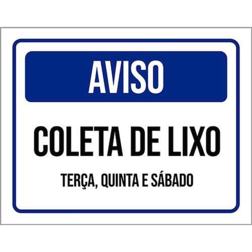 Kit 3 Placas Aviso Coleta De Lixo 36x46 Placas de sinalizaço fabricadas com poliestireno de alto impacto PSAI de 2mm e impressão ultravioleta.