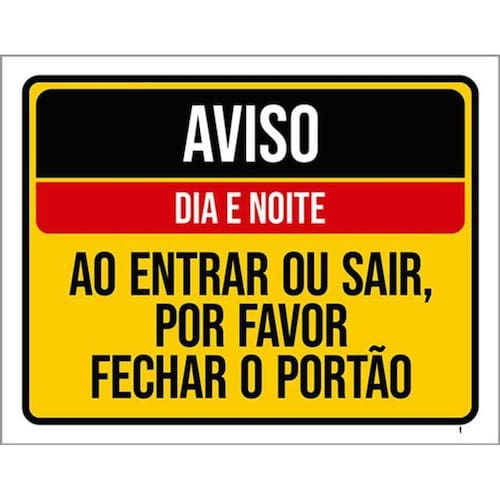 Kit 3 Placas Aviso Dia Noite Entrar Sair Fechar Portão Placas de sinalizaço fabricadas com poliestireno de alto impacto PSAI de 2mm e impressão ultravioleta.