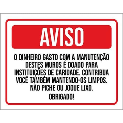Kit 3 Placas Aviso Dinheiro Manutenção Muro Não Piche 36x46 Placas de sinalizaço fabricadas com poliestireno de alto impacto PSAI de 2mm e impressão ultravioleta.