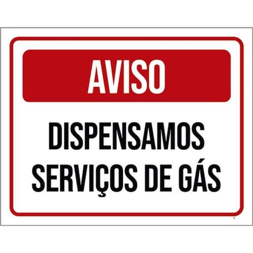 Kit 3 Placas Aviso Dispensamos Serviços De Gás 36x46 Placas de sinalizaço fabricadas com poliestireno de alto impacto PSAI de 2mm e impressão ultravioleta.
