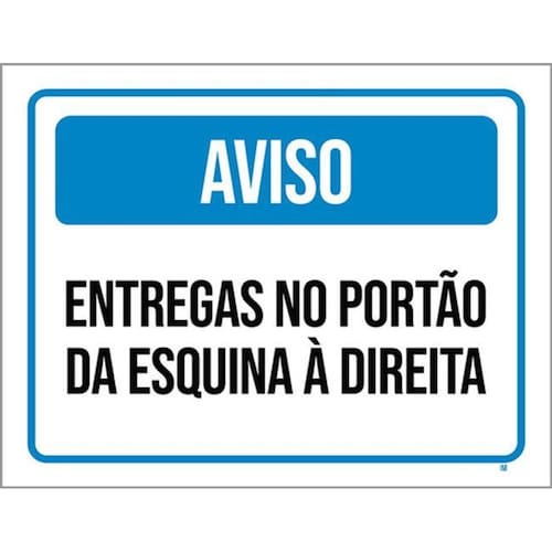 Kit 3 Placas Aviso Entregas Portão Esquina Direita Placas de sinalizaço fabricadas com poliestireno de alto impacto PSAI de 2mm e impressão ultravioleta.