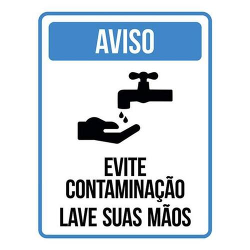 Kit 3 Placas Aviso Evite Contaminação Lave Suas Mãos Azul Placas de sinalizaço fabricadas com poliestireno de alto impacto PSAI de 2mm e impressão ultravioleta.