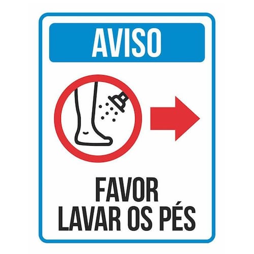Kit 3 Placas Aviso Higienete Favor Lavar Os Pés Placas de sinalizaço fabricadas com poliestireno de alto impacto PSAI de 2mm e impressão ultravioleta.