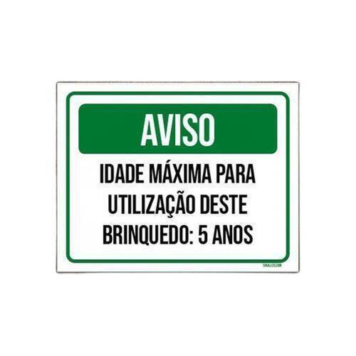 Kit 3 Placas Aviso Idade Máxima Uso Brinquedo 5 Anos placas decorativas e de sinalização fabricadas com poliestireno de alto impacto PSAI de 2mm e impressão ultravioleta de alta qualidade.