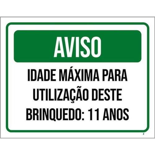 Kit 3 Placas Aviso Idade Máxima Utilização Brinquedo 11 Anos Placas de sinalizaço fabricadas com poliestireno de alto impacto PSAI de 2mm e impressão ultravioleta.