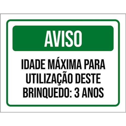 Kit 3 Placas Aviso Idade Máxima Utilização Brinquedo 3 Anos Placas de sinalizaço fabricadas com poliestireno de alto impacto PSAI de 2mm e impressão ultravioleta.