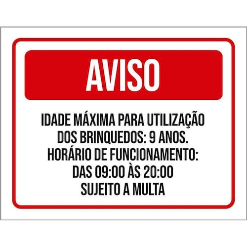 Kit 3 Placas Aviso Idade Máxima Utilização Brinquedos