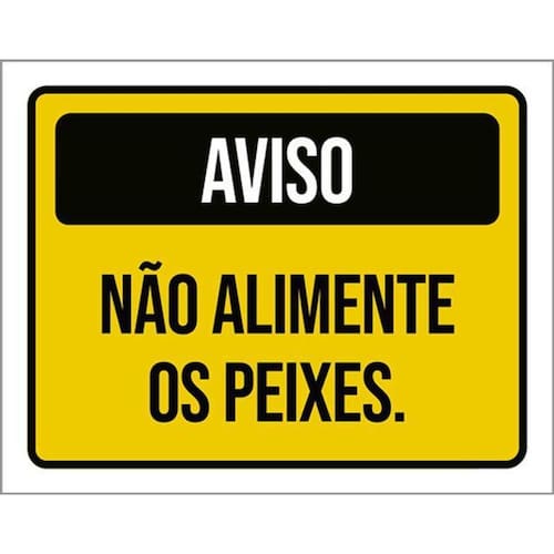 Kit 3 Placas Aviso Não Alimente Peixes Amarela 36x46 Placas de sinalizaço fabricadas com poliestireno de alto impacto PSAI de 2mm e impressão ultravioleta.