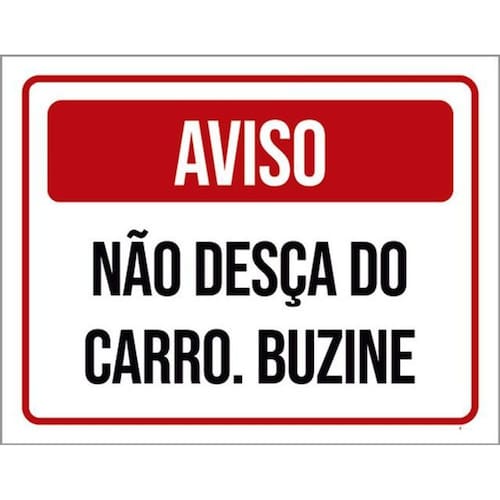 Kit 3 Placas Aviso Não Desça Carro Buzine Vermelha 36x46 Placas de sinalizaço fabricadas com poliestireno de alto impacto PSAI de 2mm e impressão ultravioleta.